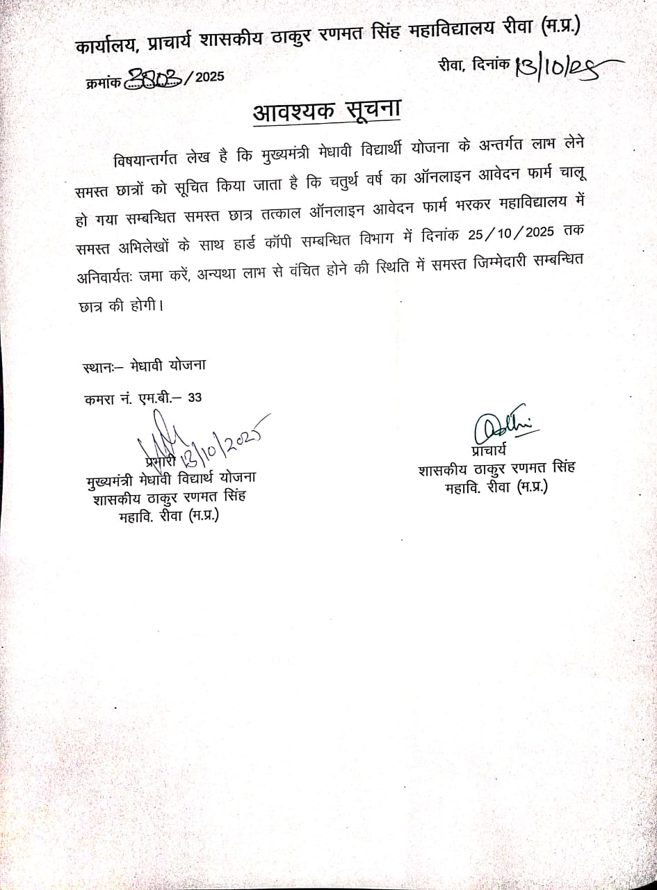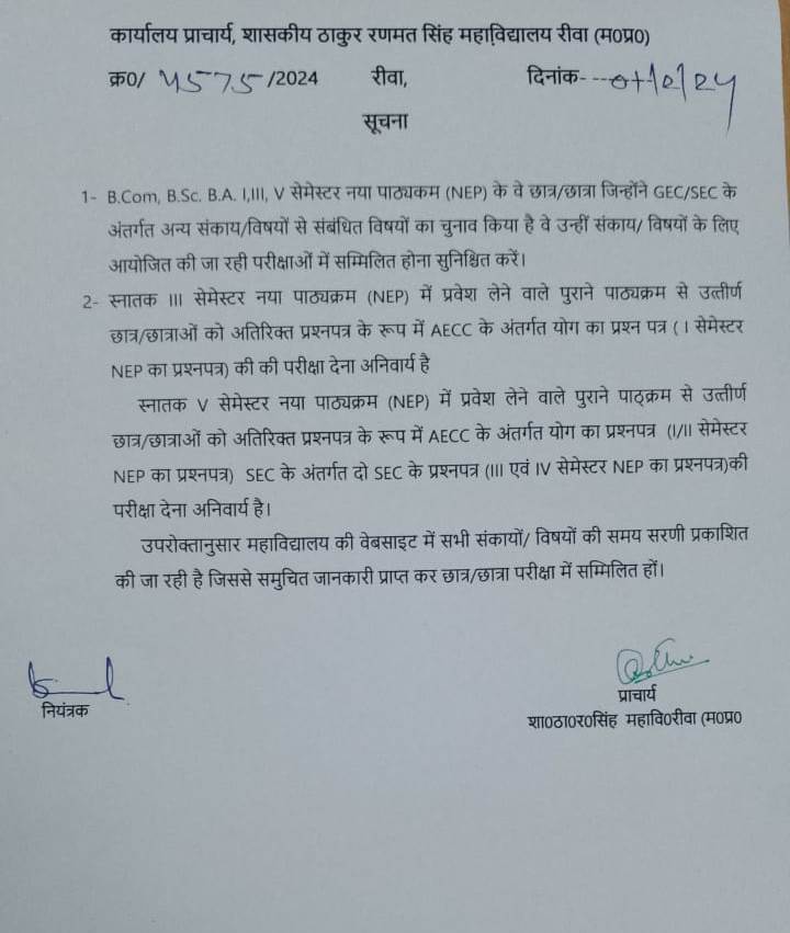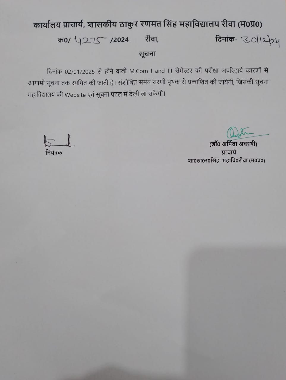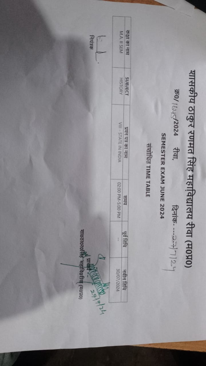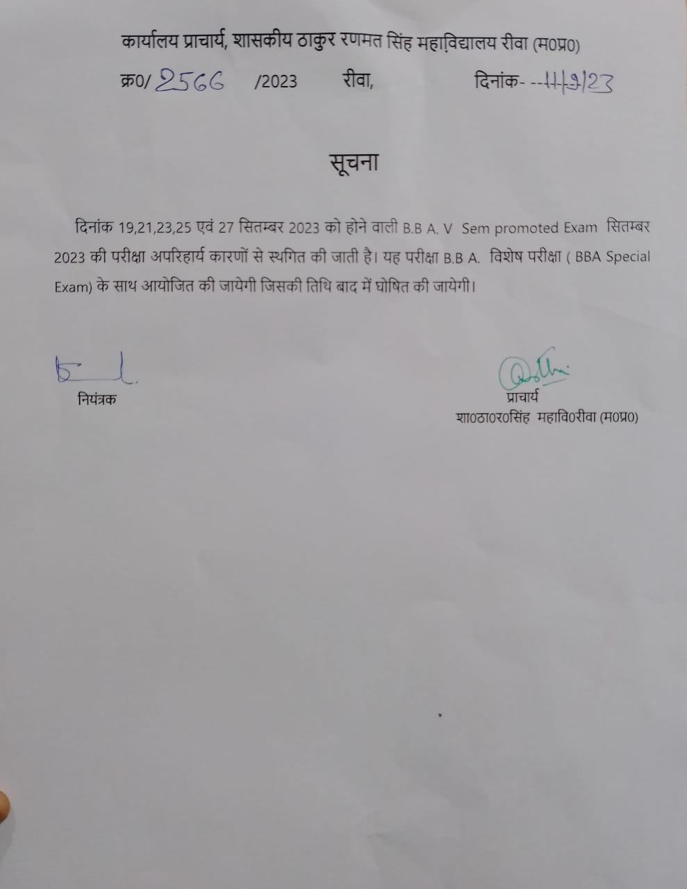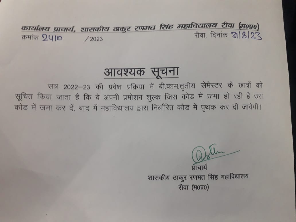 Govt. Thakur Ranmat Singh College of Excellence is one of the reputed and oldest institutions imparting higher education in Madhya Pradesh. The College was established by Maharaja of Rewa, King Raghuraj Singh in 1869 as a public school.