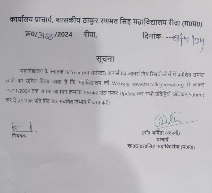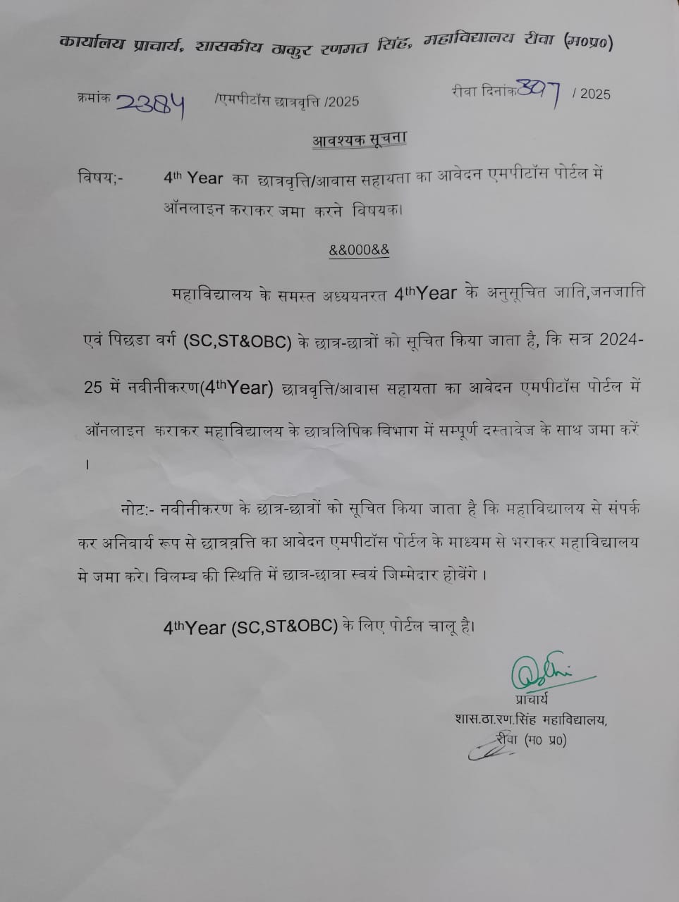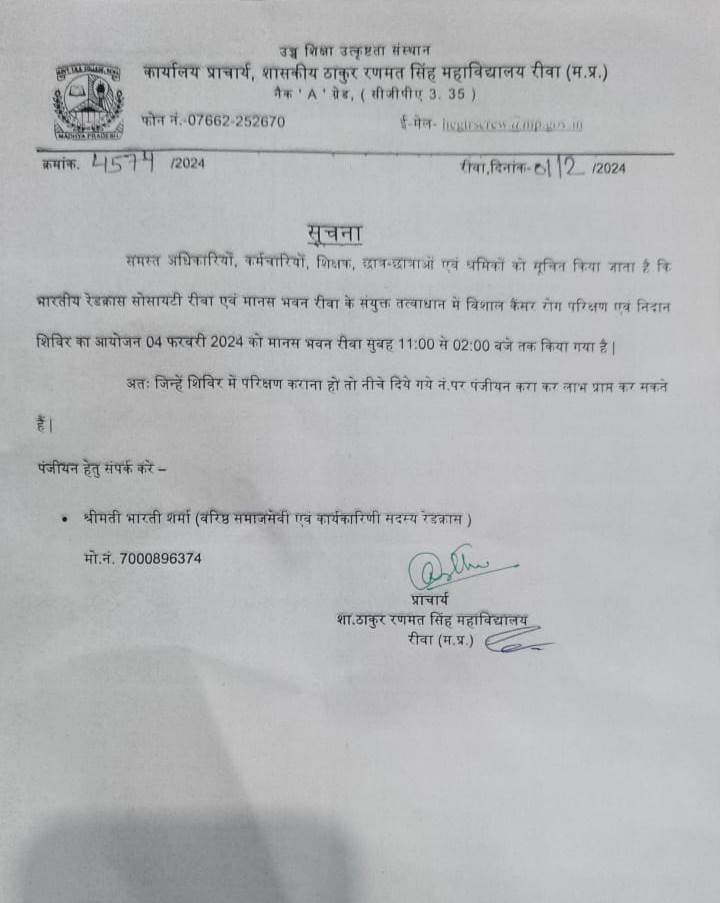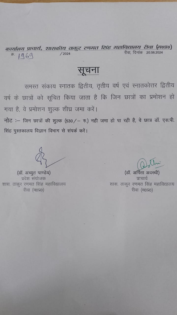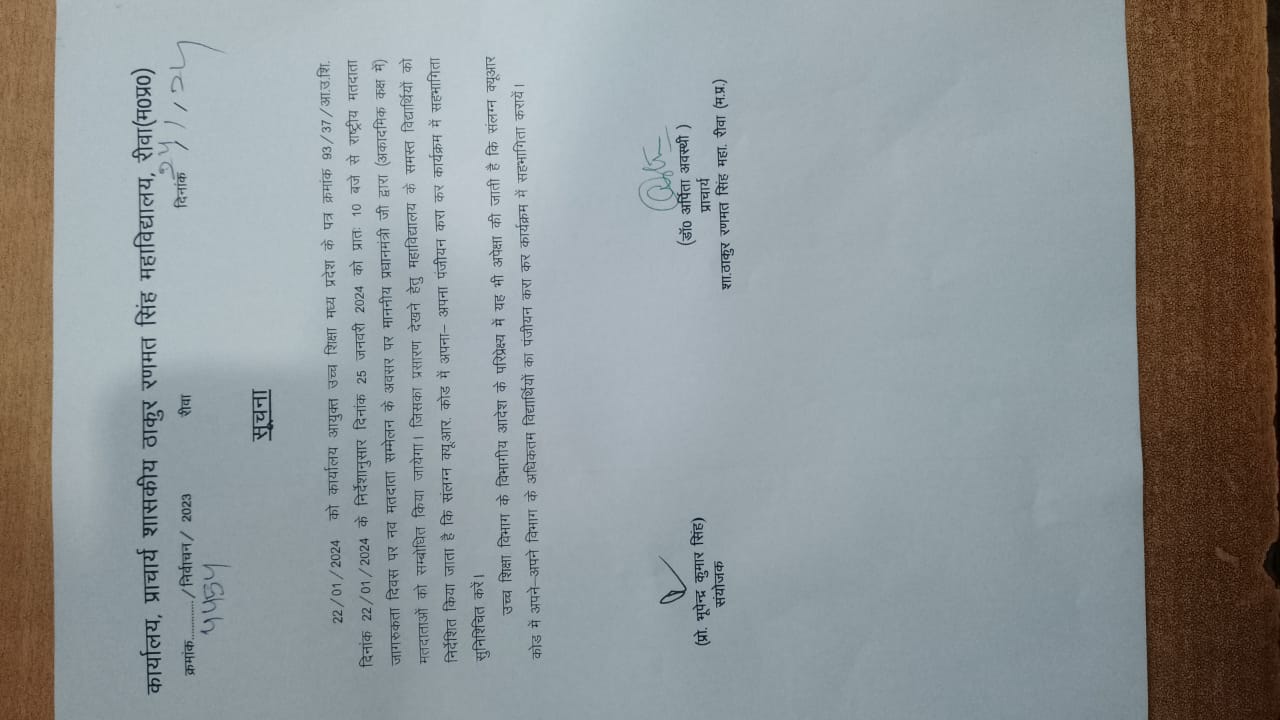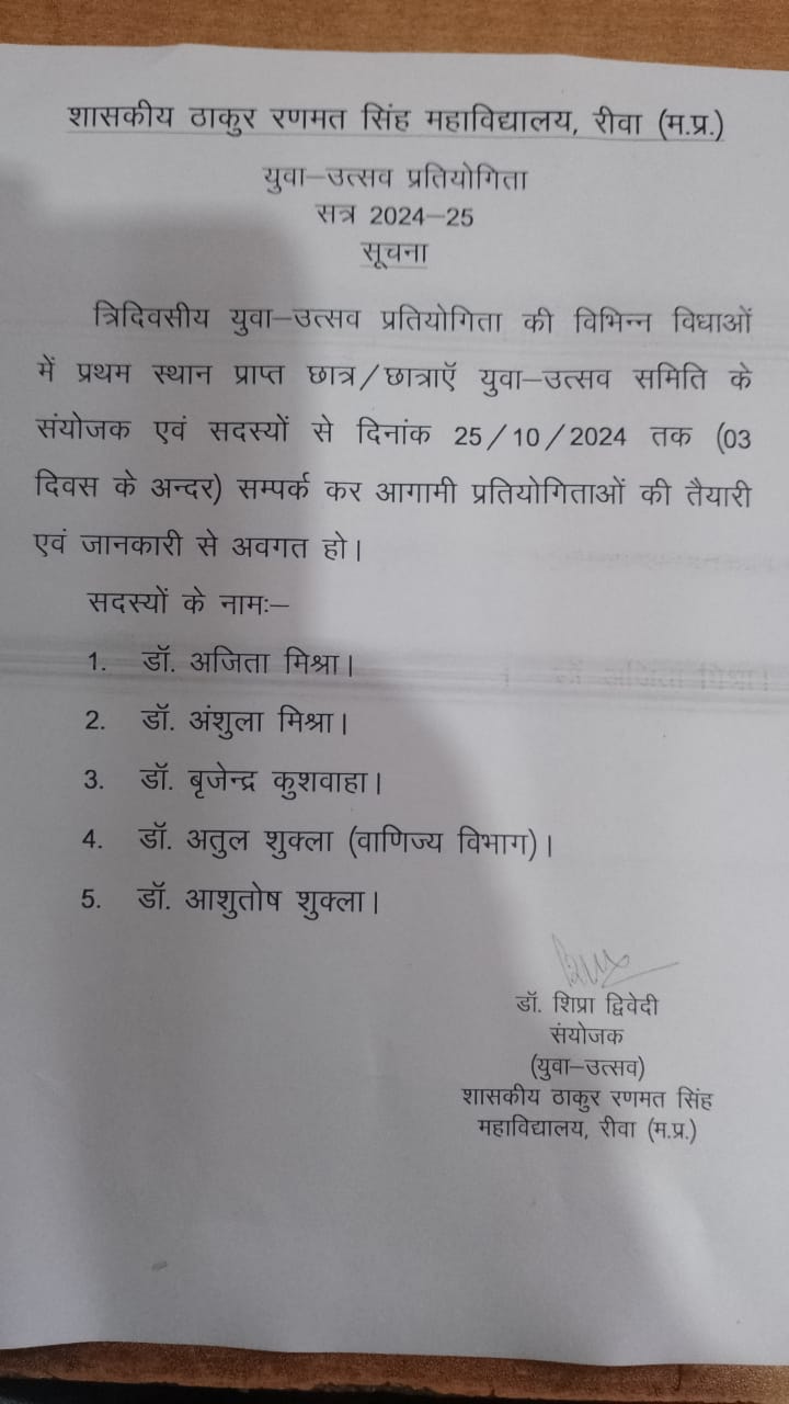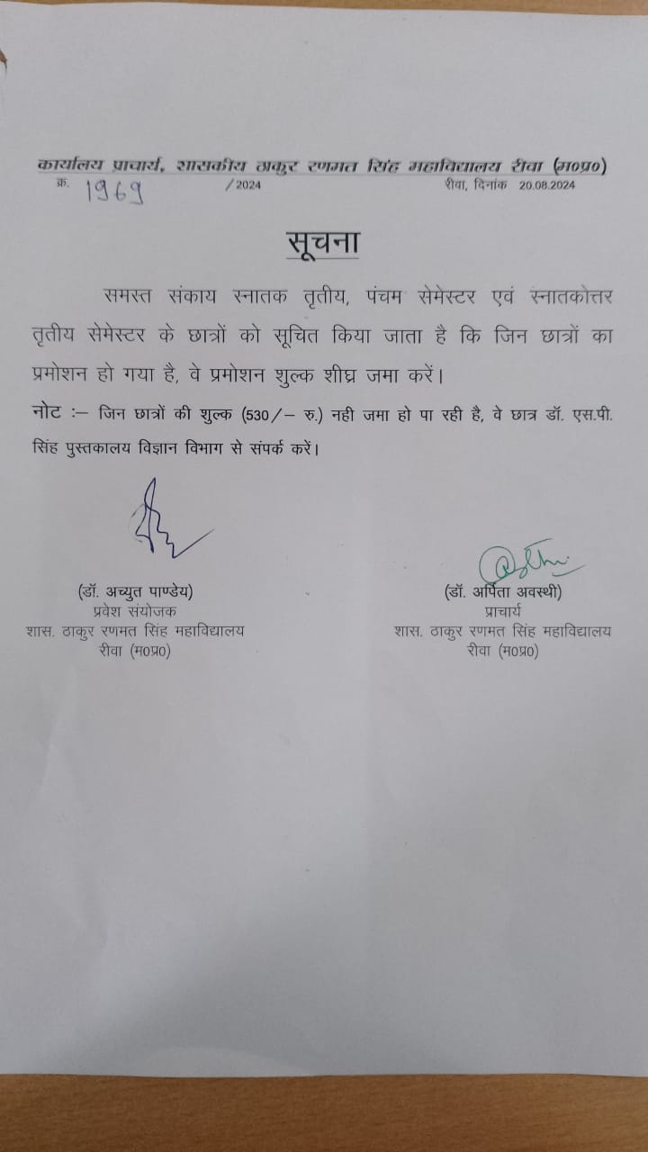 Govt. Thakur Ranmat Singh College of Excellence is one of the reputed and oldest institutions imparting higher education in Madhya Pradesh. The College was established by Maharaja of Rewa, King Raghuraj Singh in 1869 as a public school.