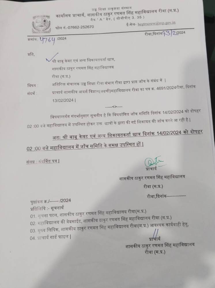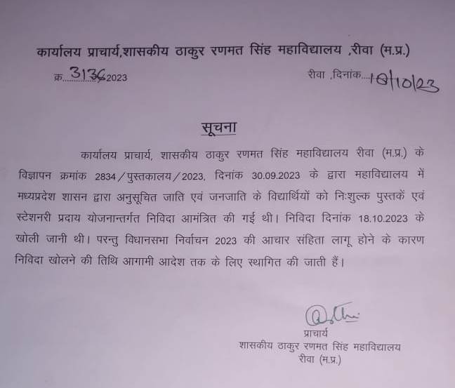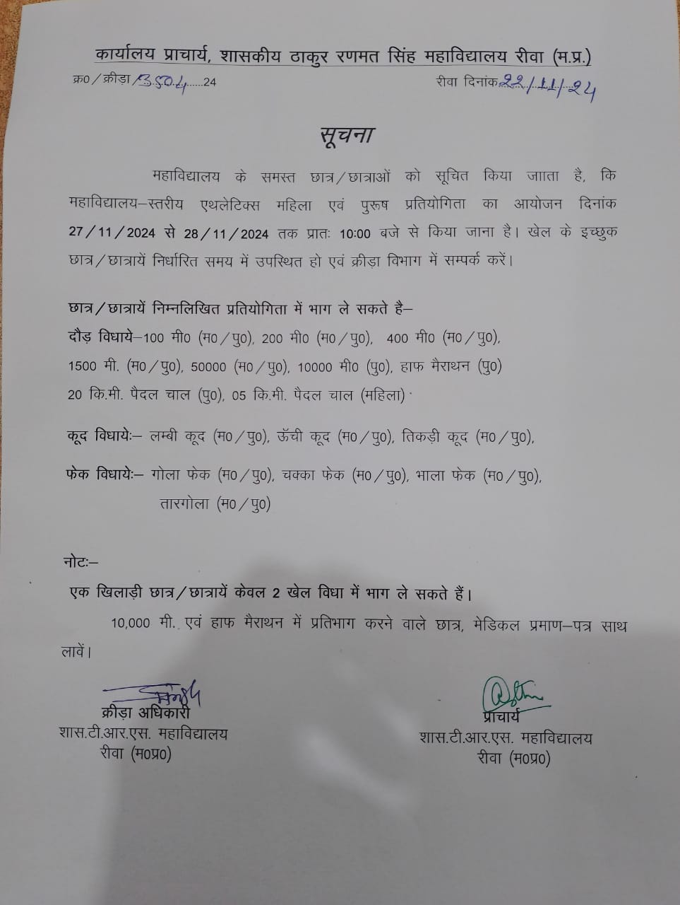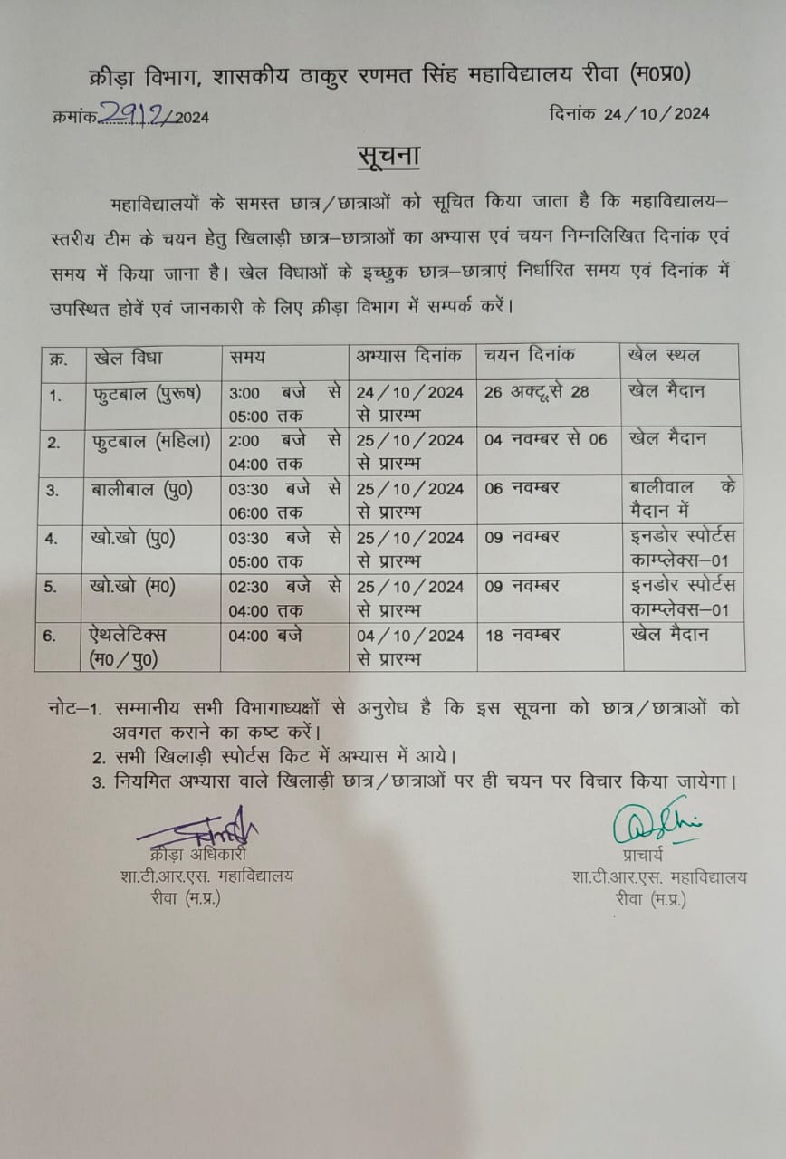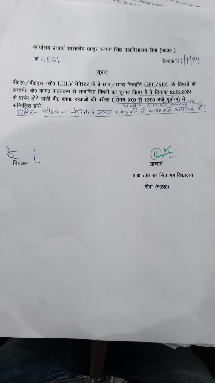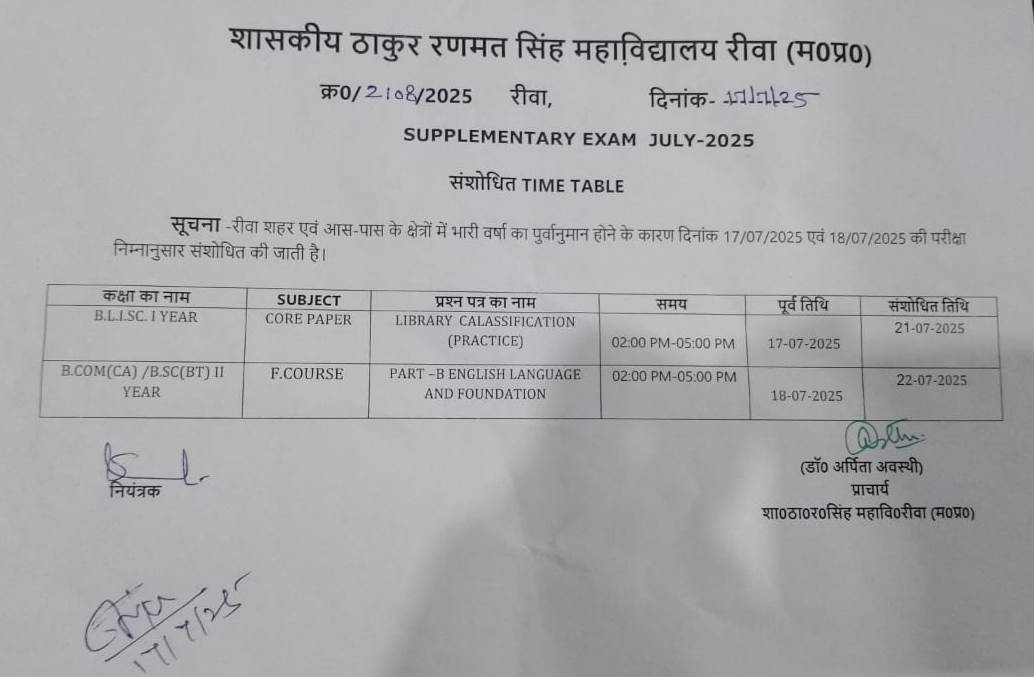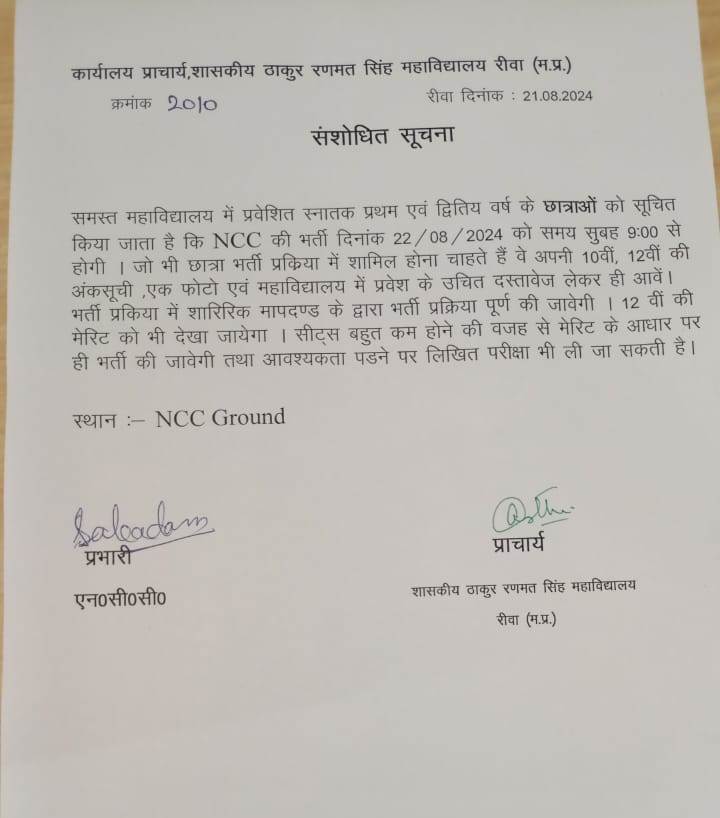 Govt. Thakur Ranmat Singh College of Excellence is one of the reputed and oldest institutions imparting higher education in Madhya Pradesh. The College was established by Maharaja of Rewa, King Raghuraj Singh in 1869 as a public school.