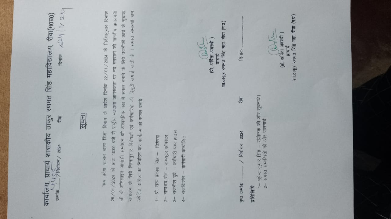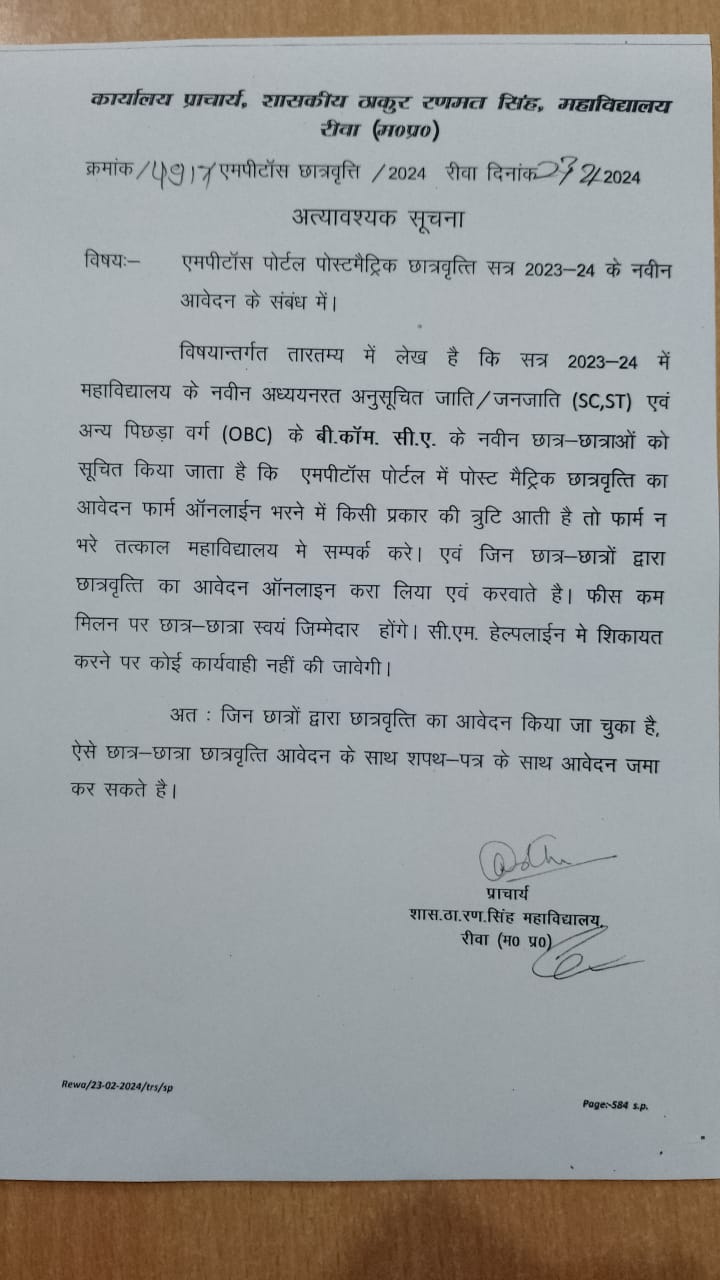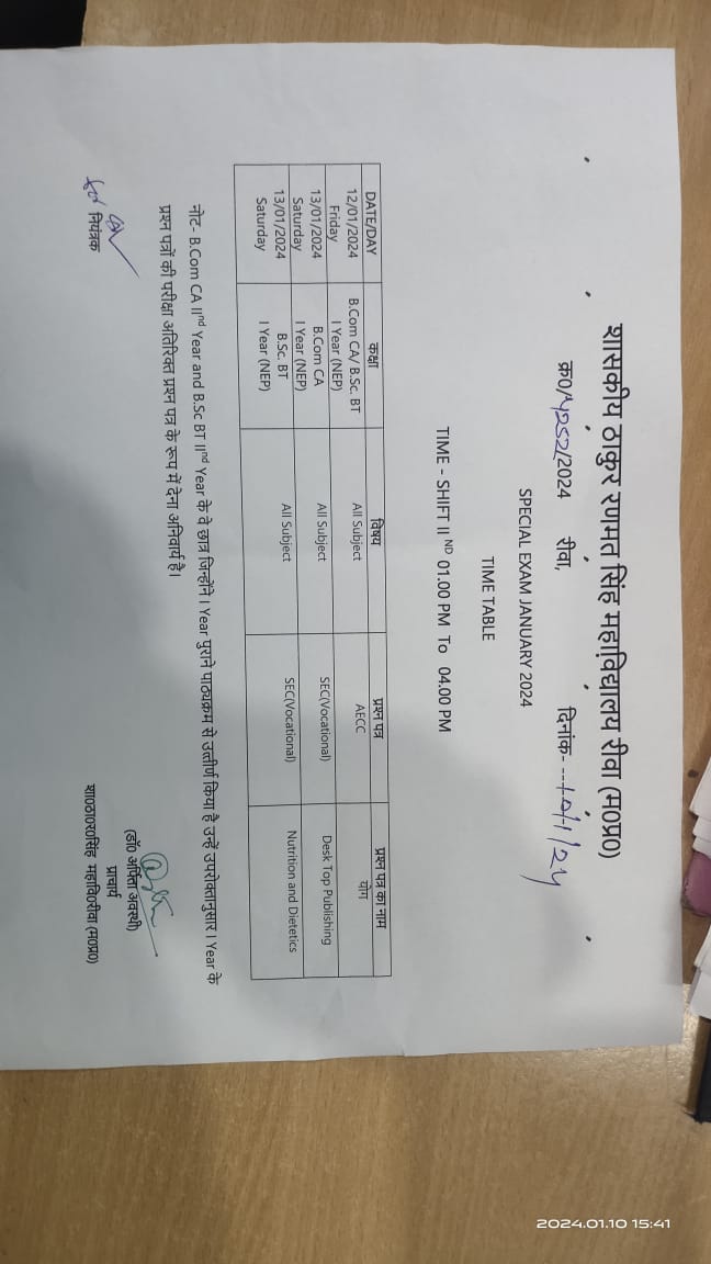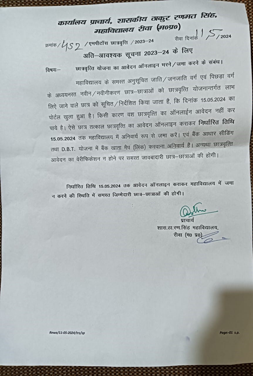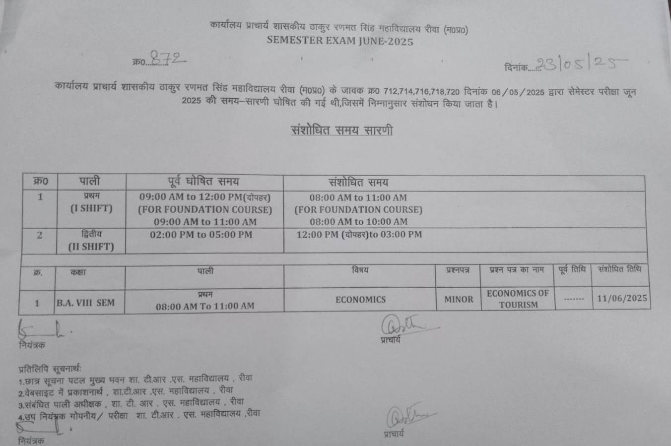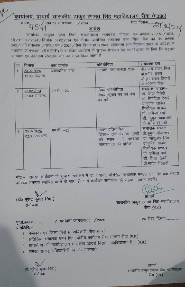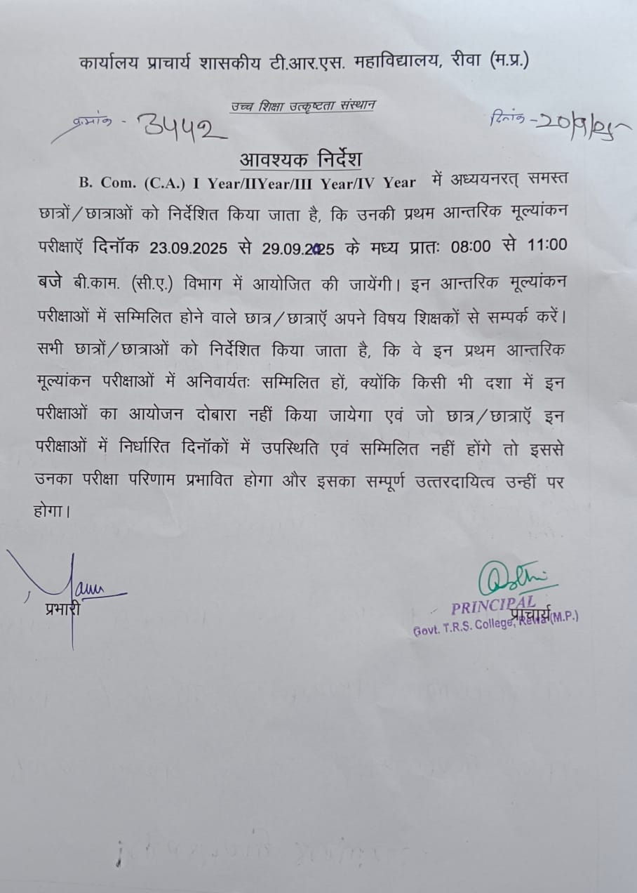 Govt. Thakur Ranmat Singh College of Excellence is one of the reputed and oldest institutions imparting higher education in Madhya Pradesh. The College was established by Maharaja of Rewa, King Raghuraj Singh in 1869 as a public school.