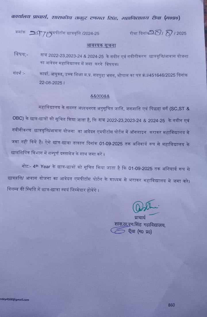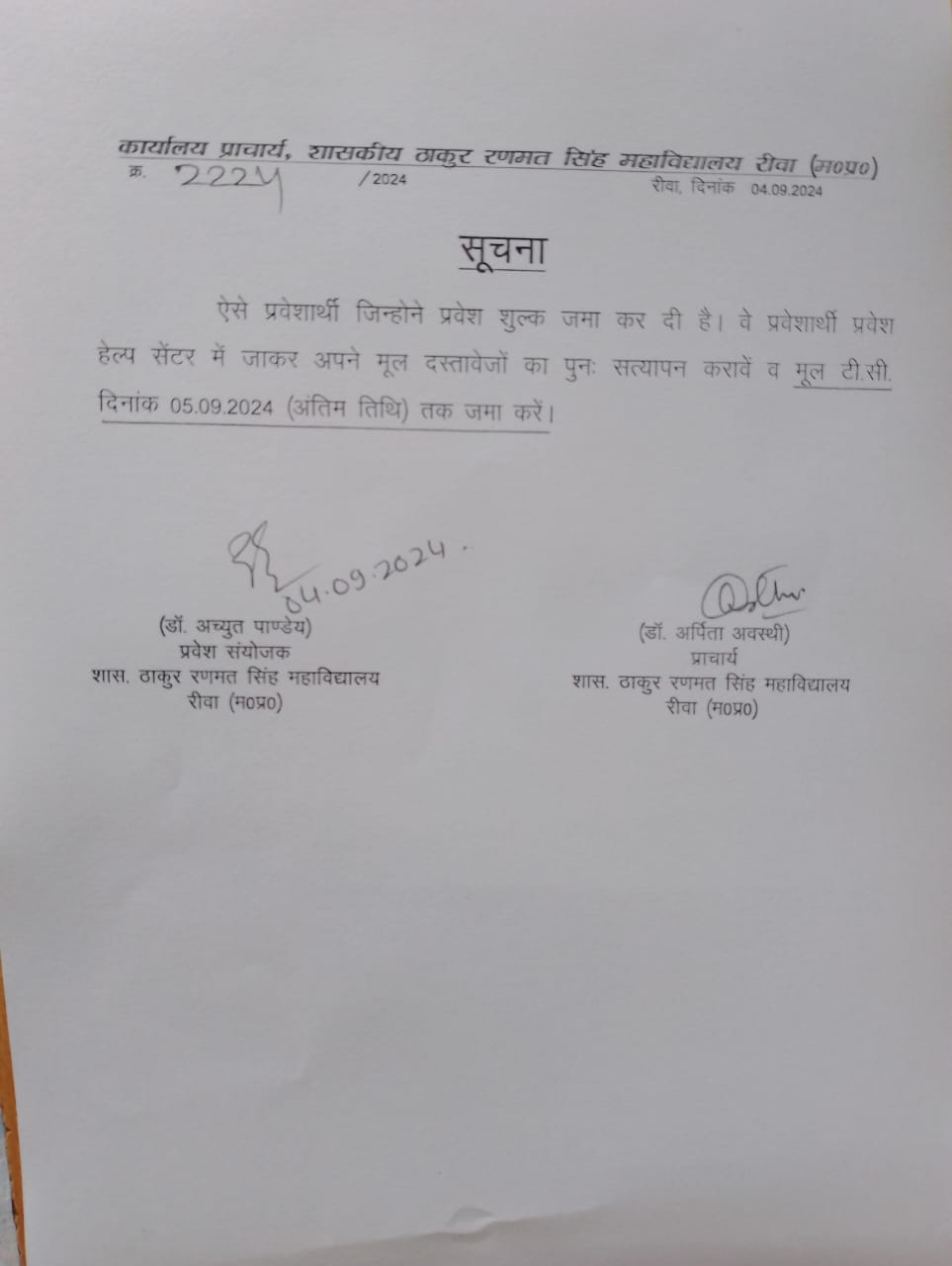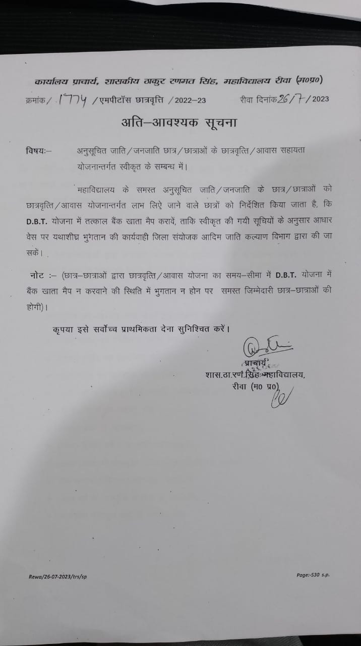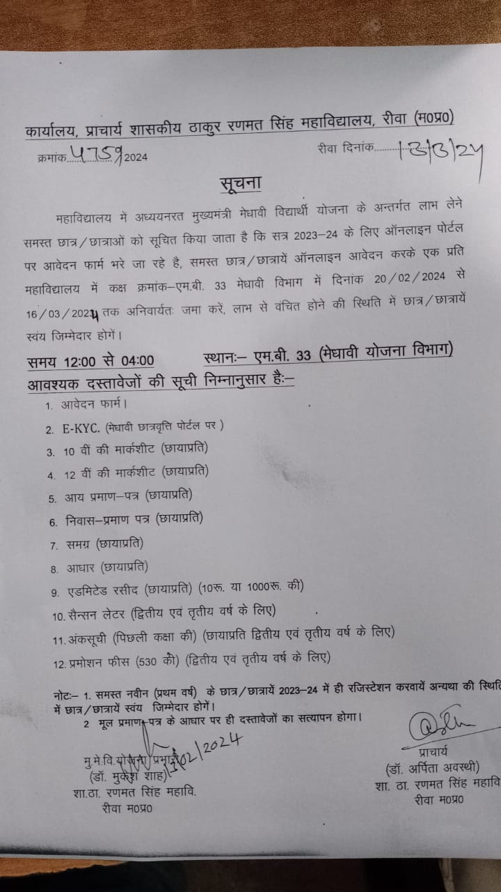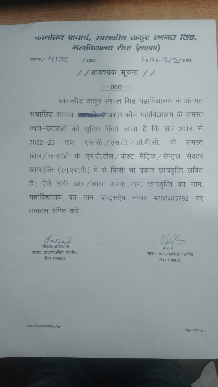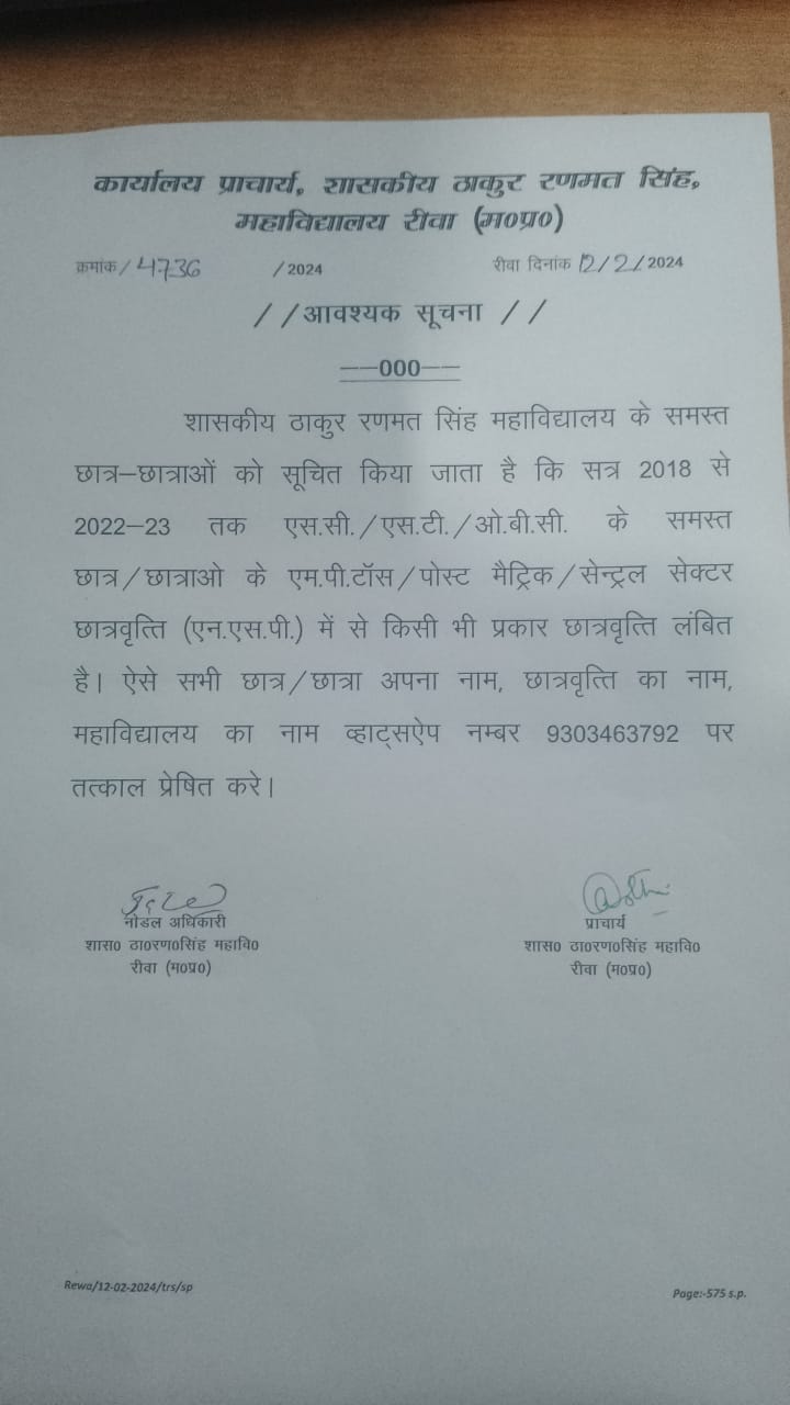 Govt. Thakur Ranmat Singh College of Excellence is one of the reputed and oldest institutions imparting higher education in Madhya Pradesh. The College was established by Maharaja of Rewa, King Raghuraj Singh in 1869 as a public school.