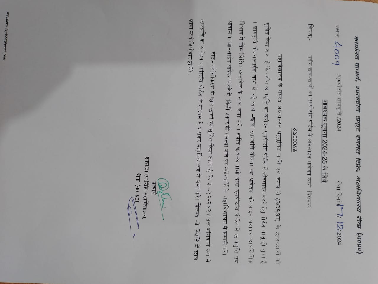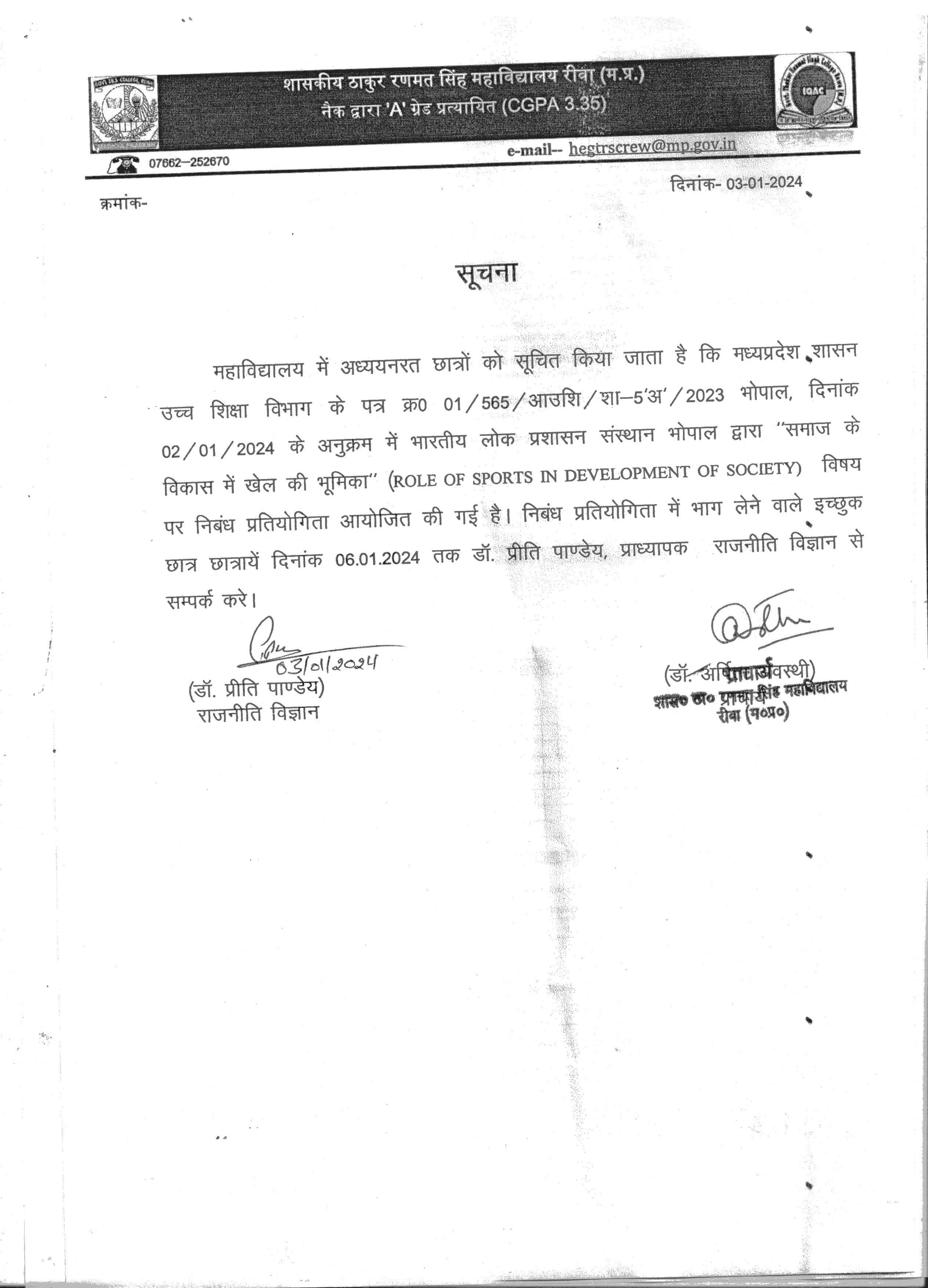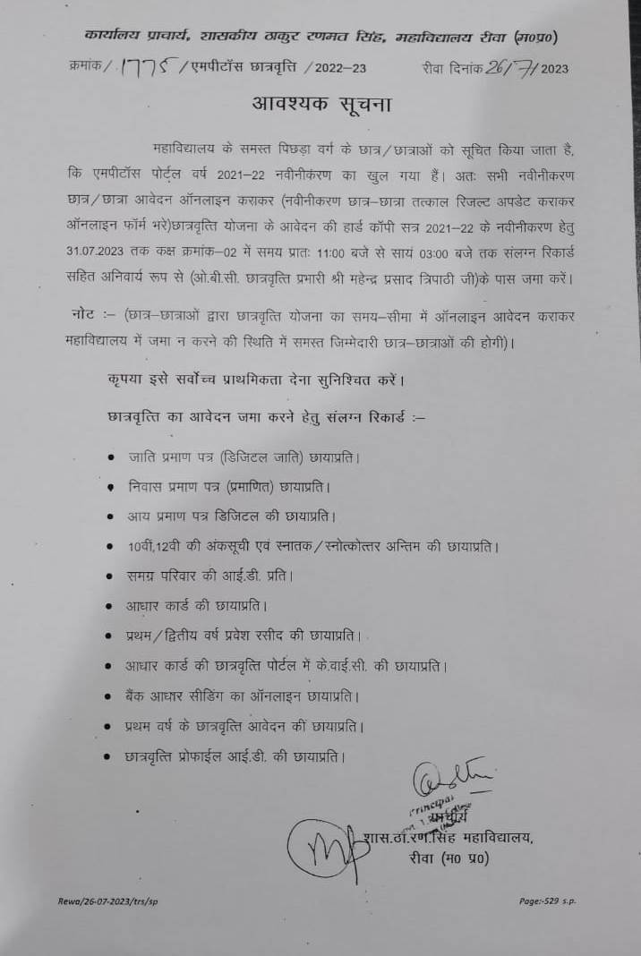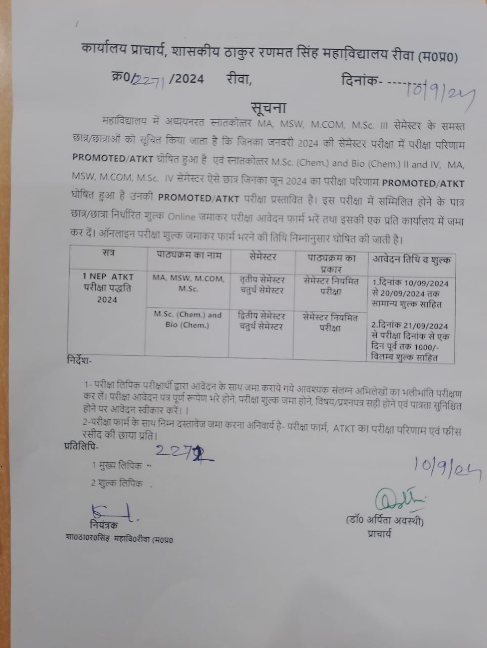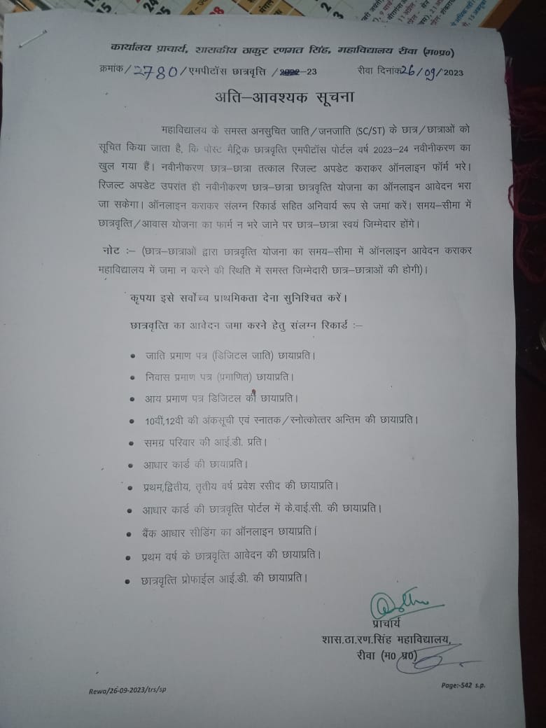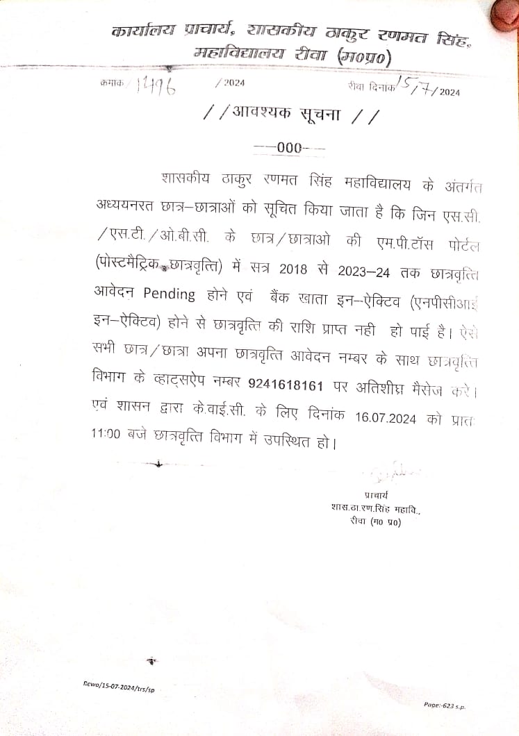 Govt. Thakur Ranmat Singh College of Excellence is one of the reputed and oldest institutions imparting higher education in Madhya Pradesh. The College was established by Maharaja of Rewa, King Raghuraj Singh in 1869 as a public school.