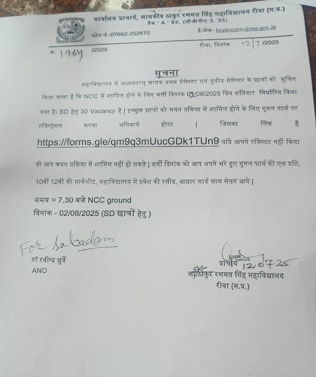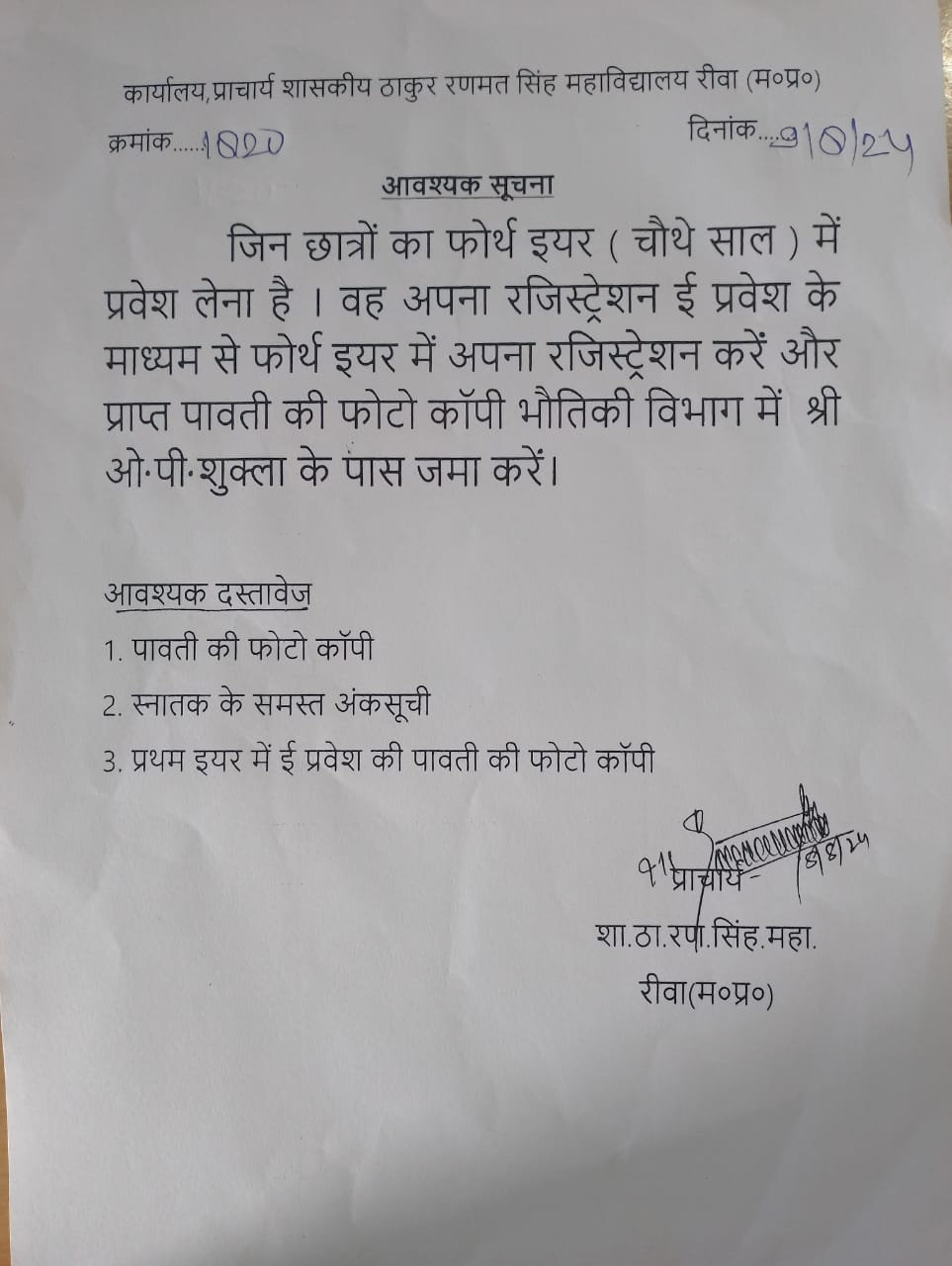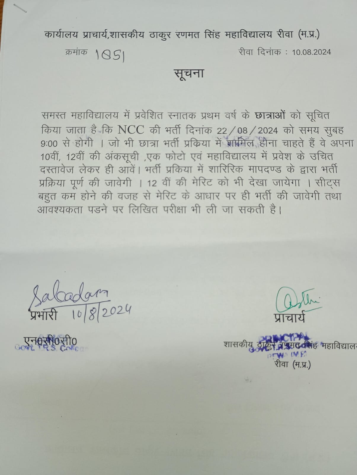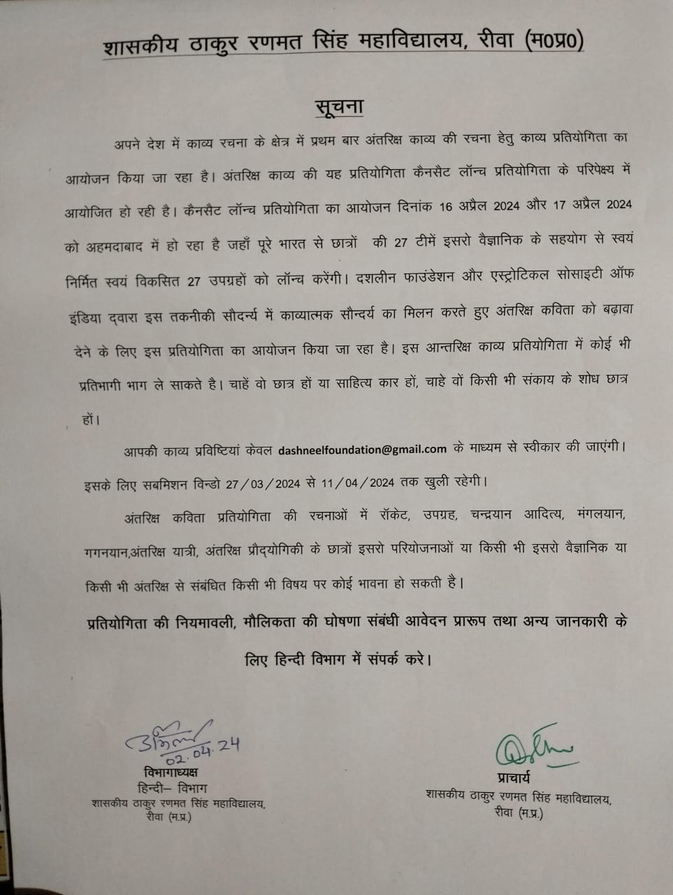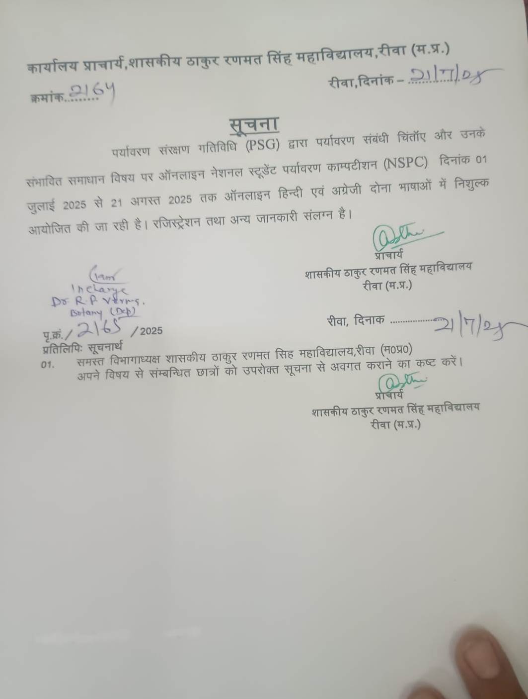 Govt. Thakur Ranmat Singh College of Excellence is one of the reputed and oldest institutions imparting higher education in Madhya Pradesh. The College was established by Maharaja of Rewa, King Raghuraj Singh in 1869 as a public school.