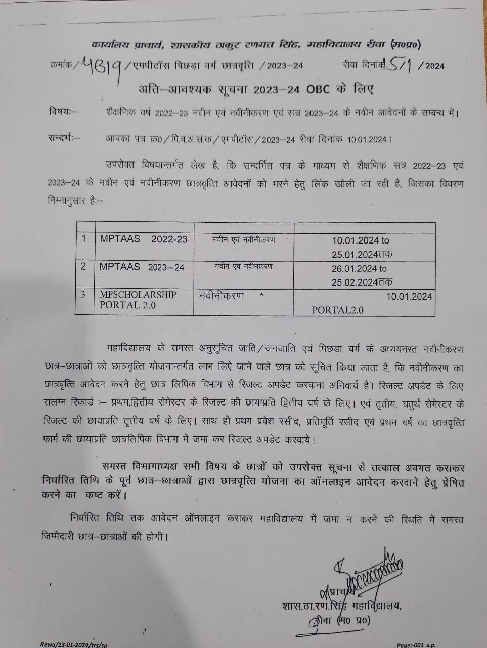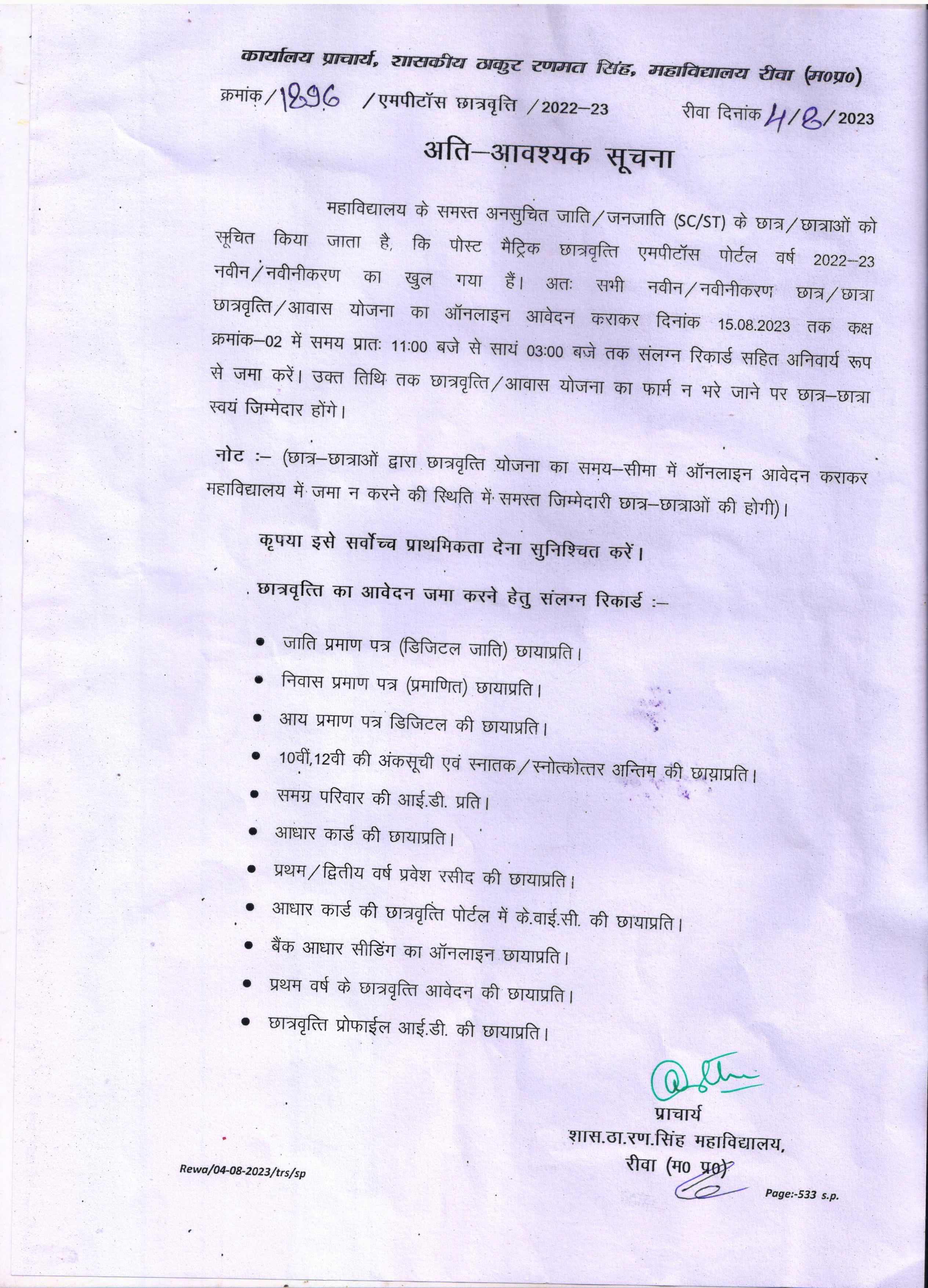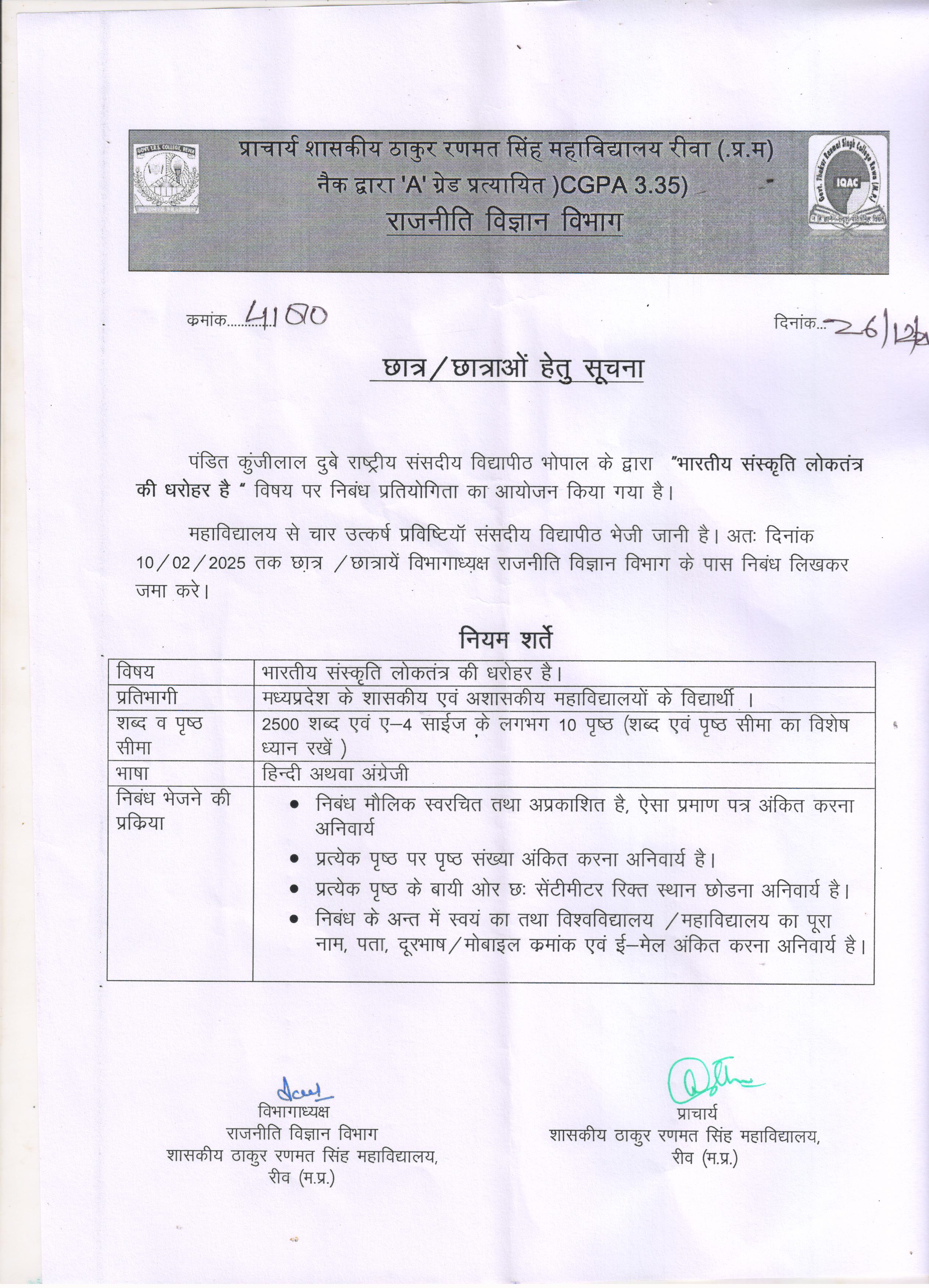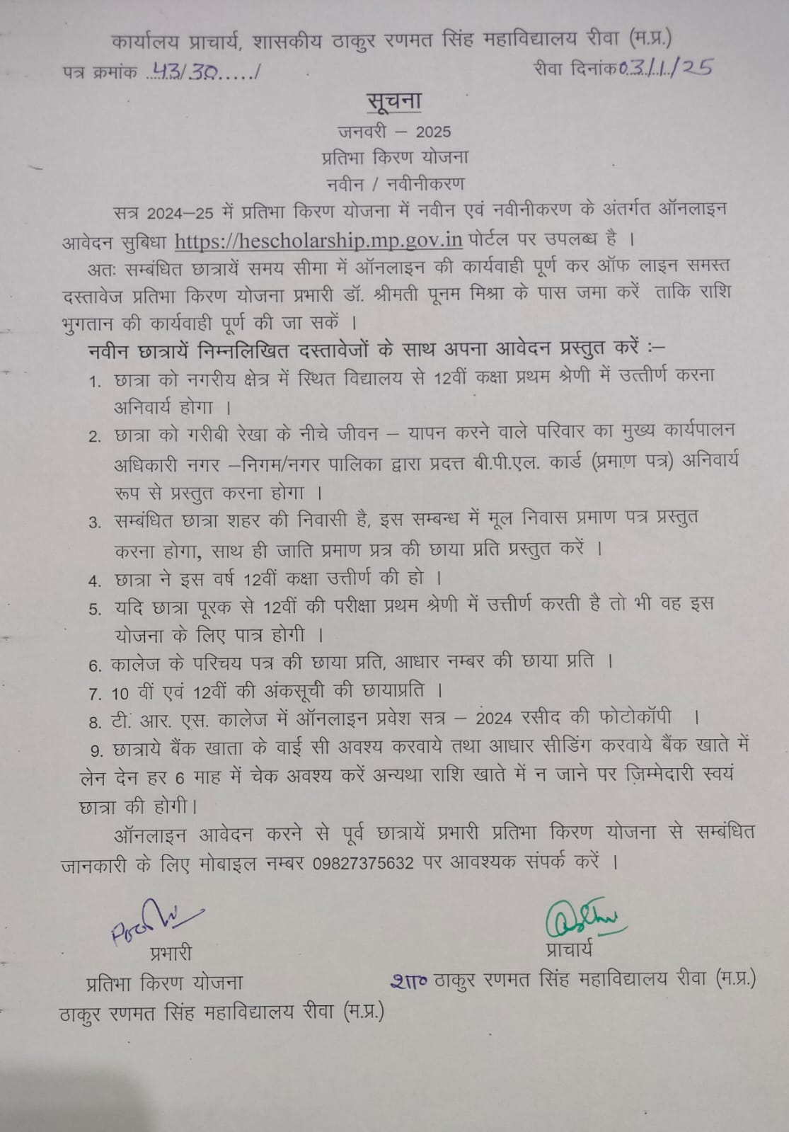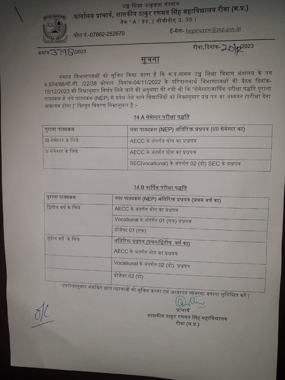 Govt. Thakur Ranmat Singh College of Excellence is one of the reputed and oldest institutions imparting higher education in Madhya Pradesh. The College was established by Maharaja of Rewa, King Raghuraj Singh in 1869 as a public school.