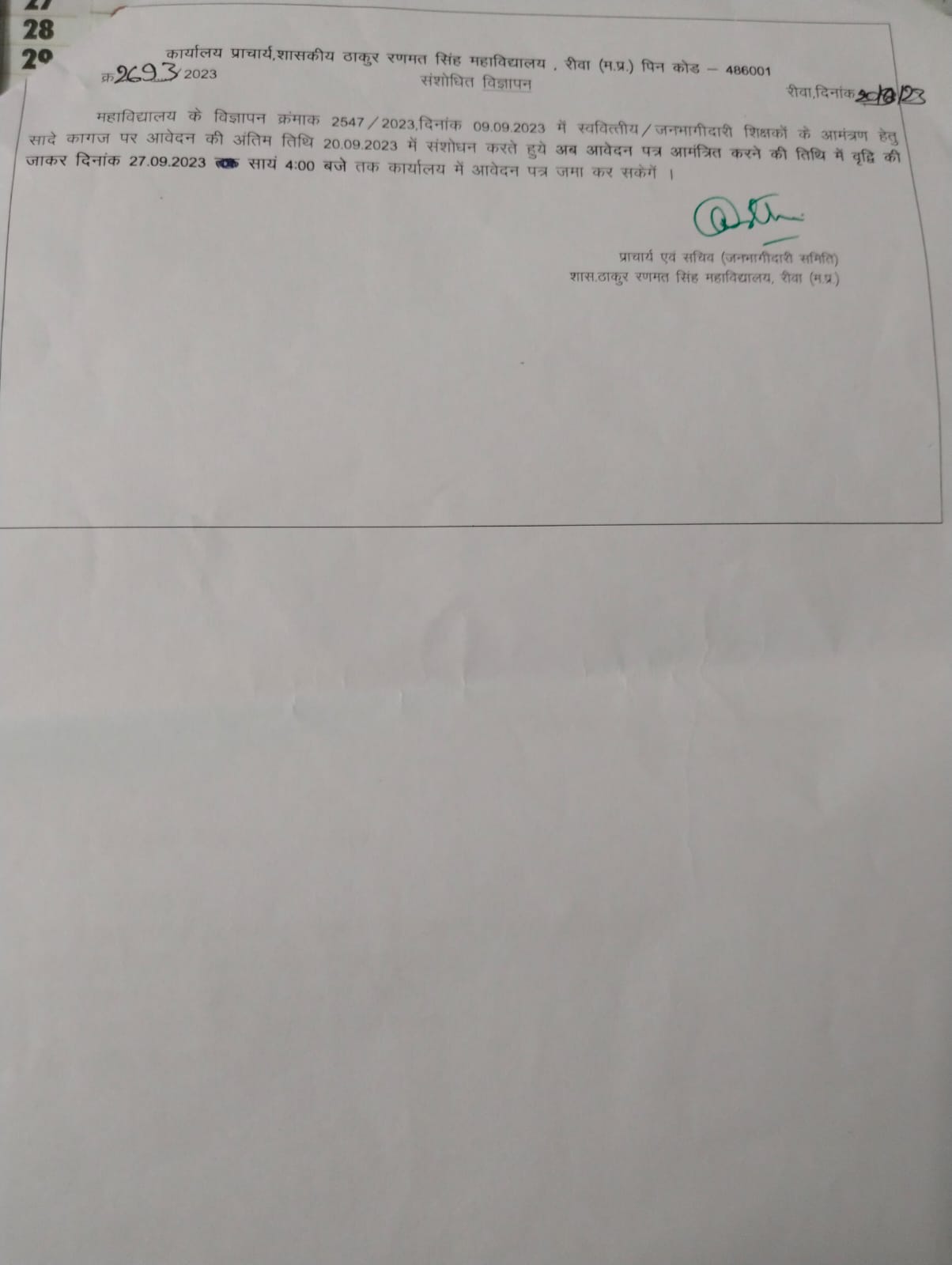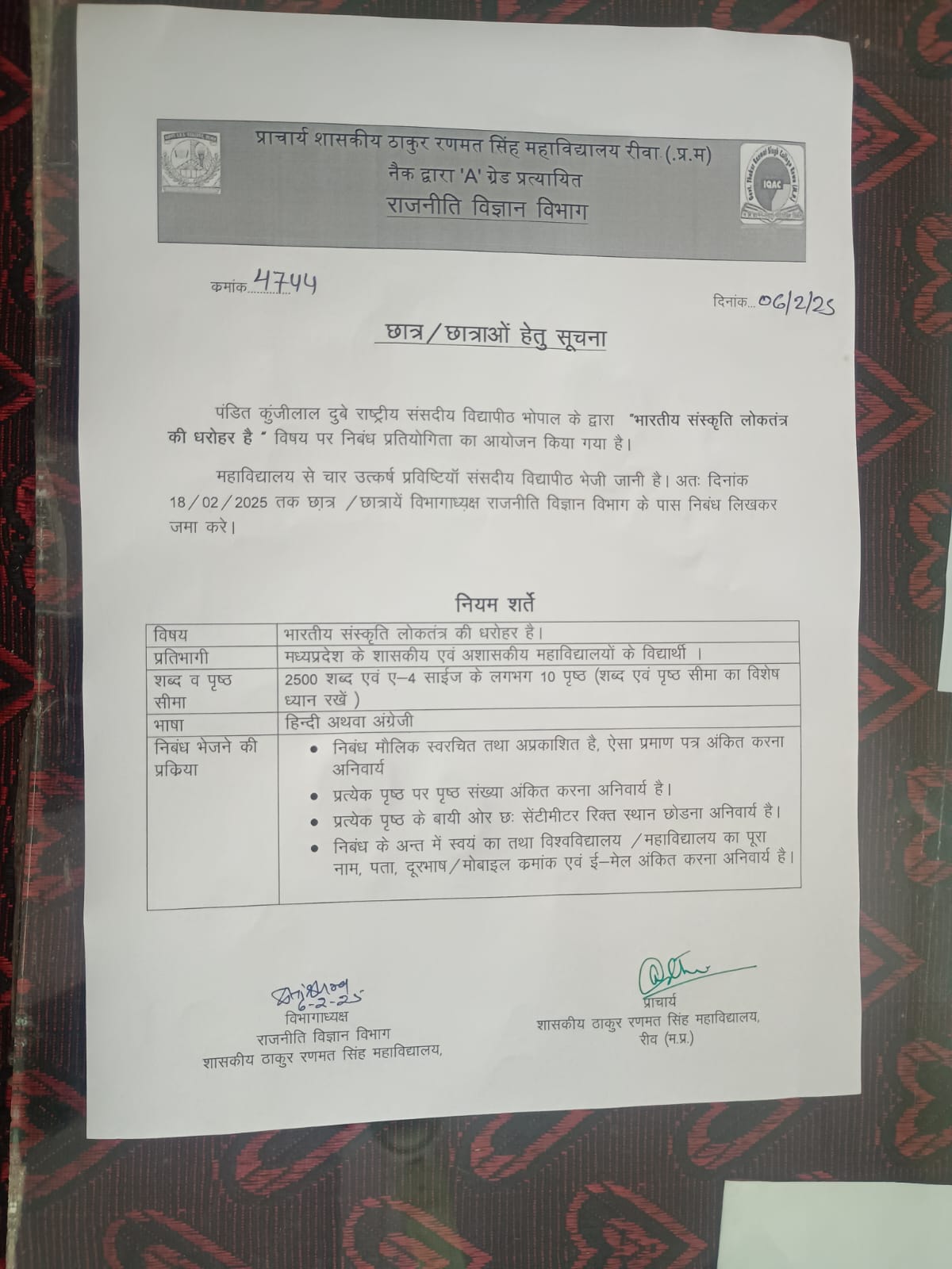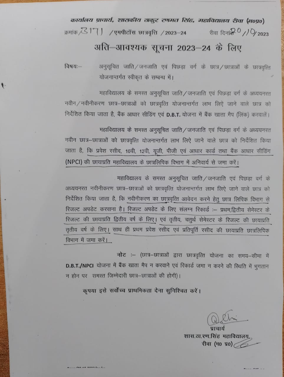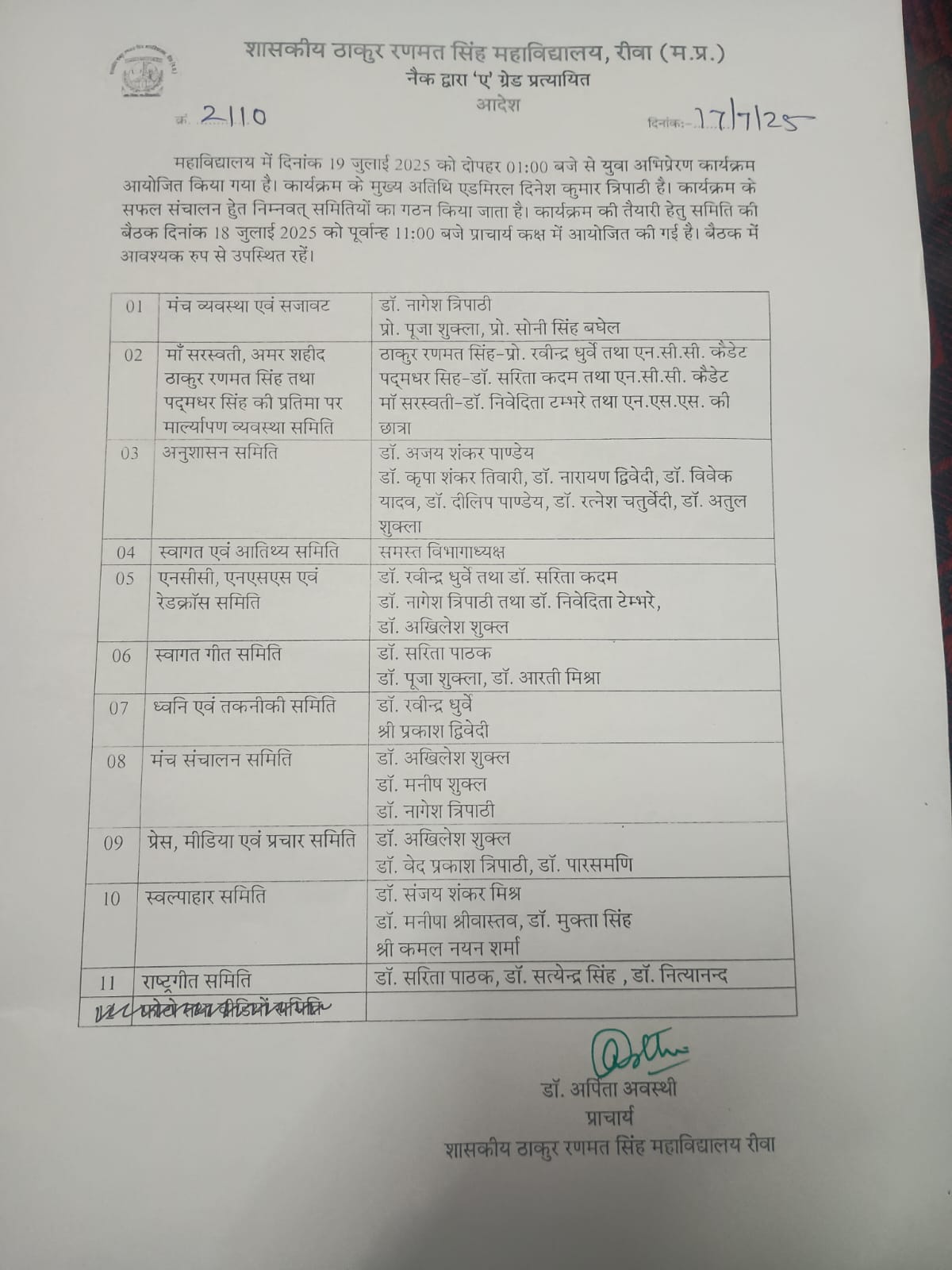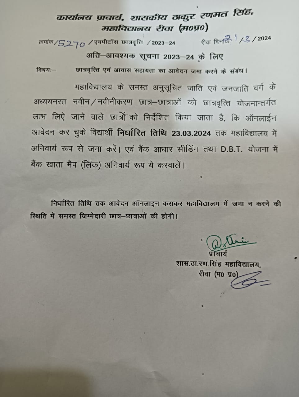 Govt. Thakur Ranmat Singh College of Excellence is one of the reputed and oldest institutions imparting higher education in Madhya Pradesh. The College was established by Maharaja of Rewa, King Raghuraj Singh in 1869 as a public school.