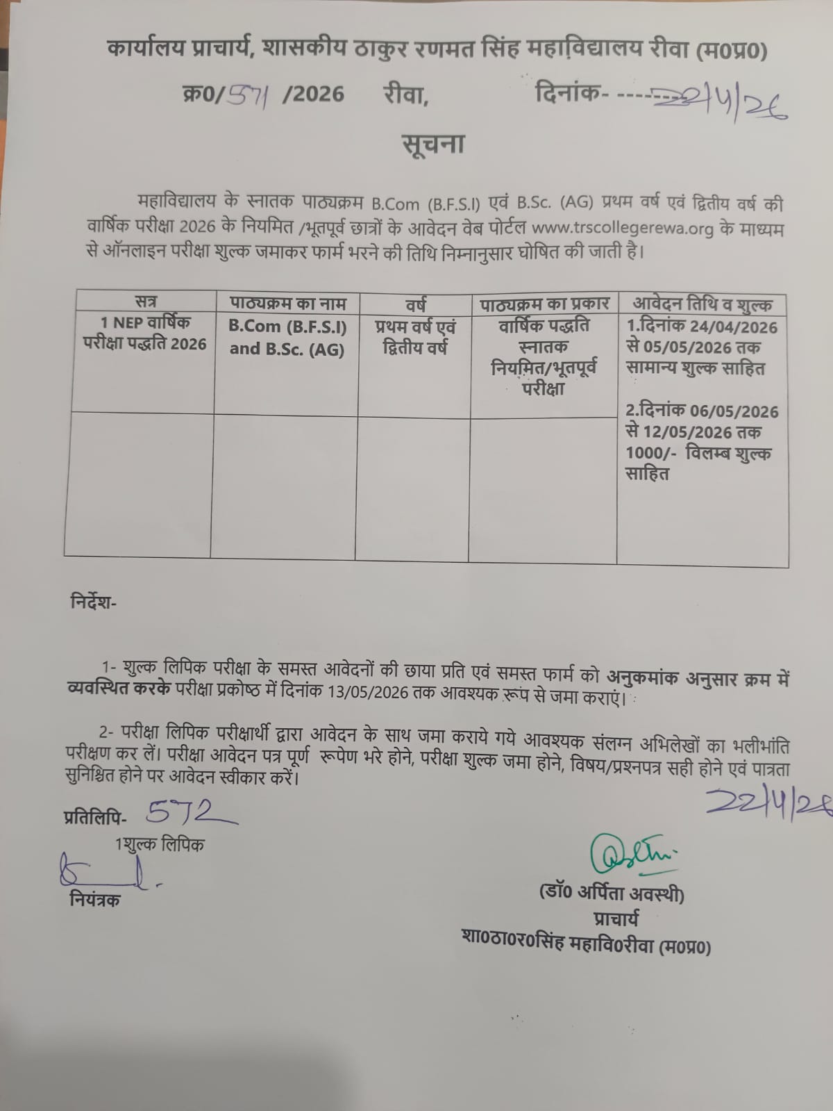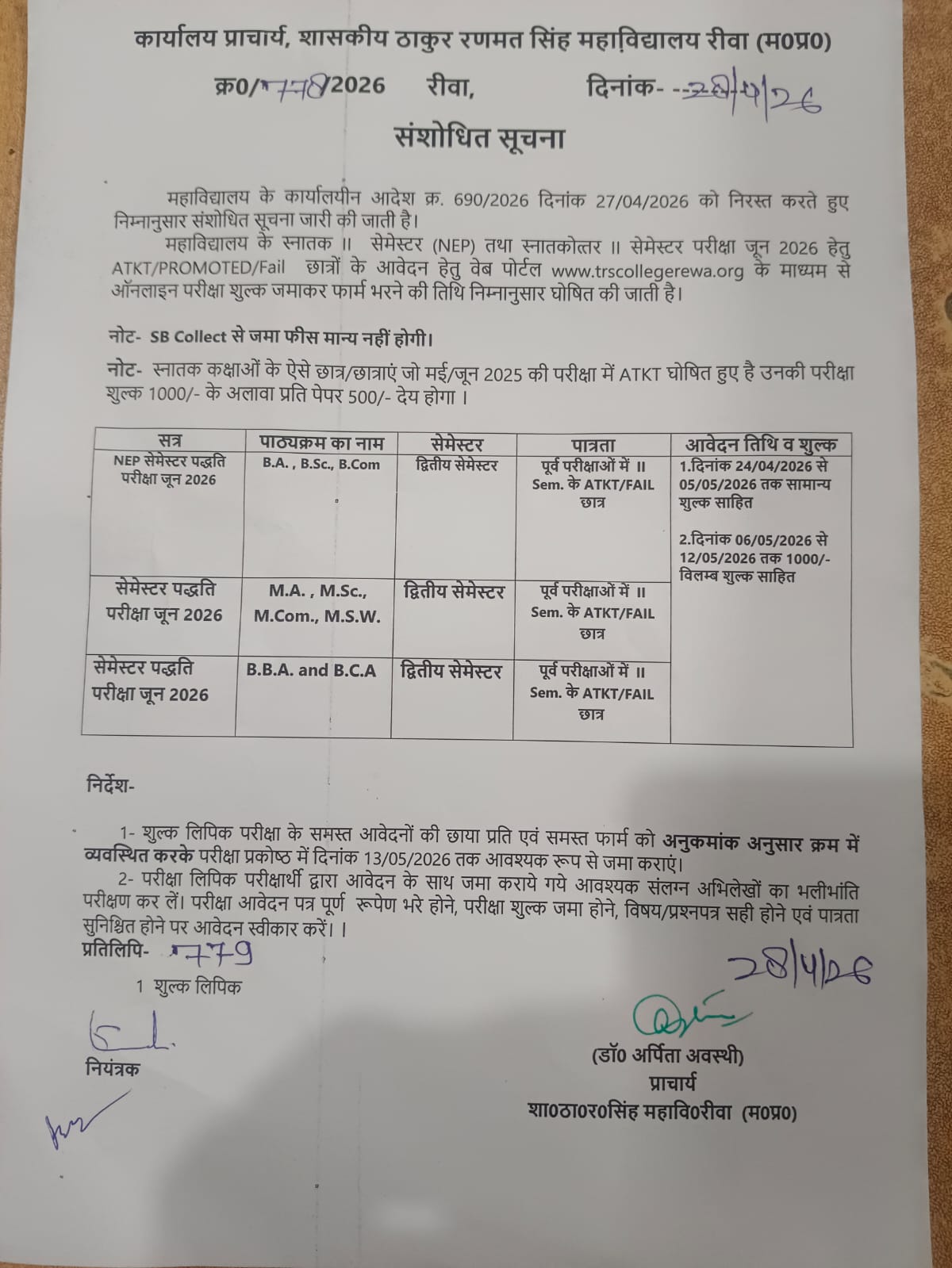 फीस जमा करने की अंतिम तिथि में वृद्धि 07-12-2025 कर दी गई है , छात्र प्रवेश / परीक्षा फॉर्म गलत न भरें यदि पोर्टल में गलत आ रहा है तो महाविद्यालय में संपर्क करें |